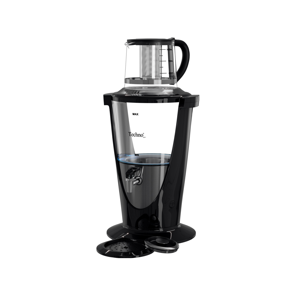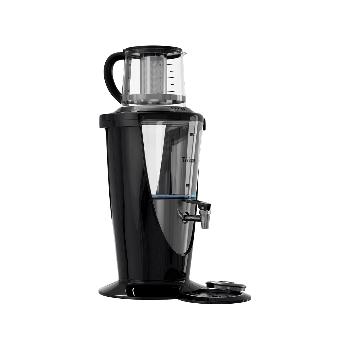 به دلیل محبوبیت چای در بین ایرانیان، وجود چای ساز در هر خانه ای کاربردی است. چای ساز کمک می کند تا در کم ترین زمان ممکن چای یا دمنوش دلخواه خود را دم کنید. جنس بدنه چای ساز، یکی از عوامل مهم و موثر در طعم چای است زیرا اگر چایی ساز شما متریال خوبی نداشته باشد، طعم نامطلوبی به چای خواهد داد. چای سازهای موجود در بازار در انواع شیشه ای، پلاستیکی و استیل موجود می باشند. چای ساز های سماوری به دلیل اینکه قوری در بالای کتری قرار می گیرد، بخار آب حاصل از کتری به سمت قوری رفته و چای به آرامی دم میکشد که باعث خوش رنگ و خوش عطر شدن چای می شود. چای ساز تکنو TE-918 یکی از چای ساز های با کیفیت و خوش ساخت از برند تکنو است که از نوع چای ساز های سماوری بوده و بدنه آن از جنس شیشه (glass)، استیل و پلاستیک می باشد. این محصول دارای قوری با ظرفیت 1 لیتر و کتری با ظرفیت 3 لیتر است.